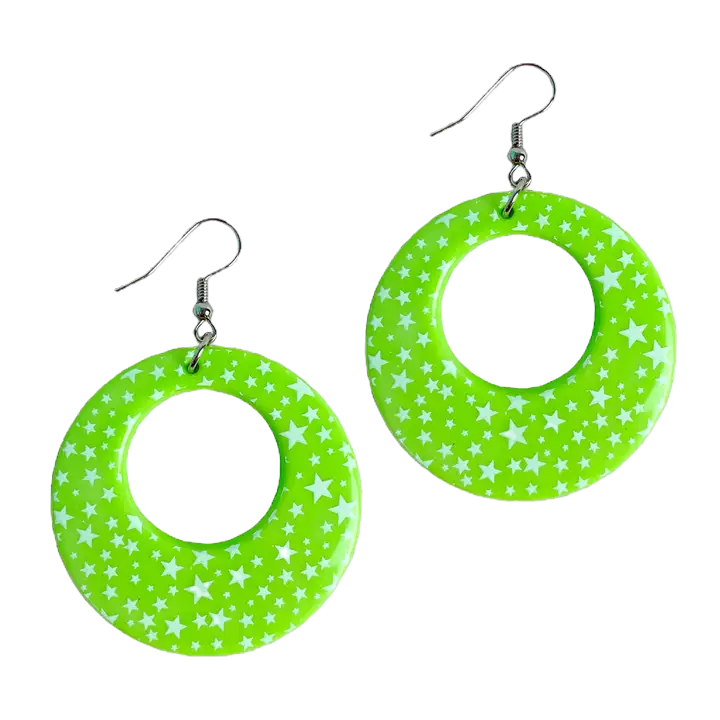 Lime Green and White Star Print Earrings