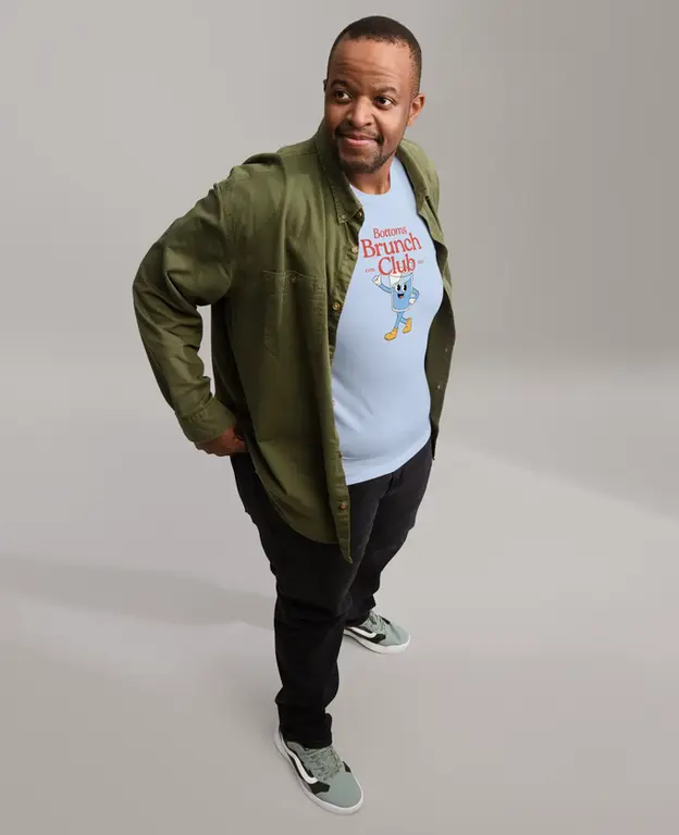 This iconic design features a fabulously confident glass character, rocking bold yellow boots and standing proud alongside the club’s signature text: Bottoms Brunch Club ESTD. 2021. Whether you’re in it for the gossip or the carbs, this tee ensures you’ll be brunch royalty.