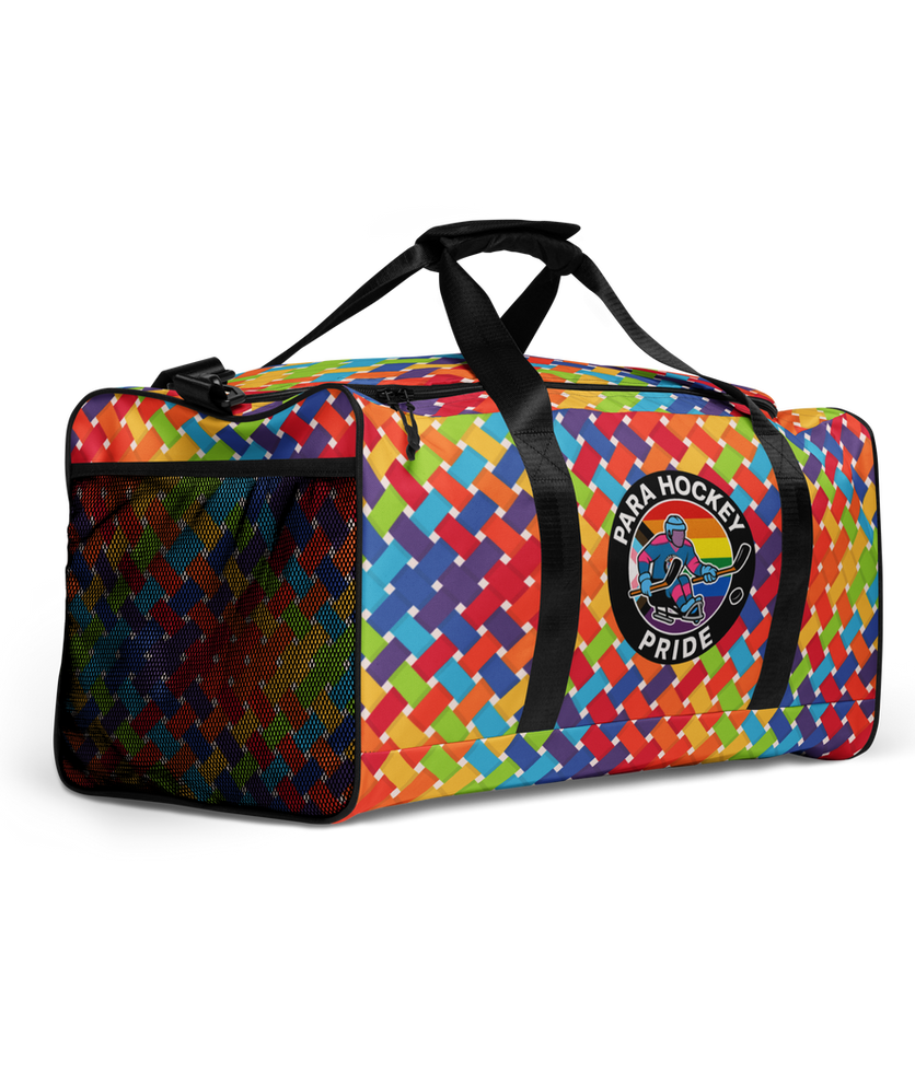 - Style: Para Hockey Pride all-over print duffle bag