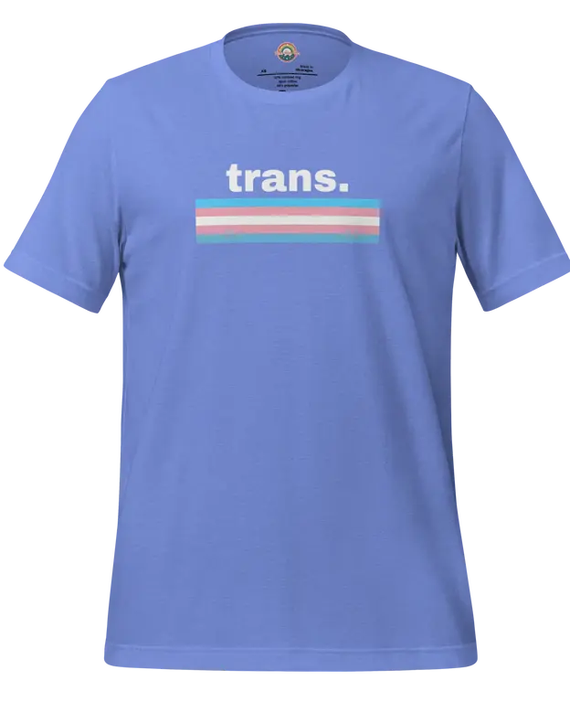 Show your pride and support with our new TRANS. unisex tee—designed for comfort, visibility, and unapologetic authenticity. Made with our signature super-soft blend, this tee features bold “TRANS.” lettering and a vibrant trans flag graphic, so you can celebrate your identity or stand in solidarity with the trans community every day.